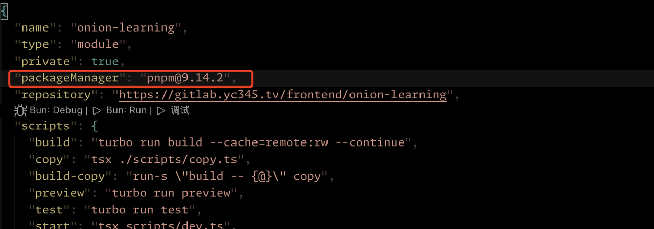 corepack enable启用 Corepack。指定你想使用的包管理器版本(package.json 中 packageManager 配置),