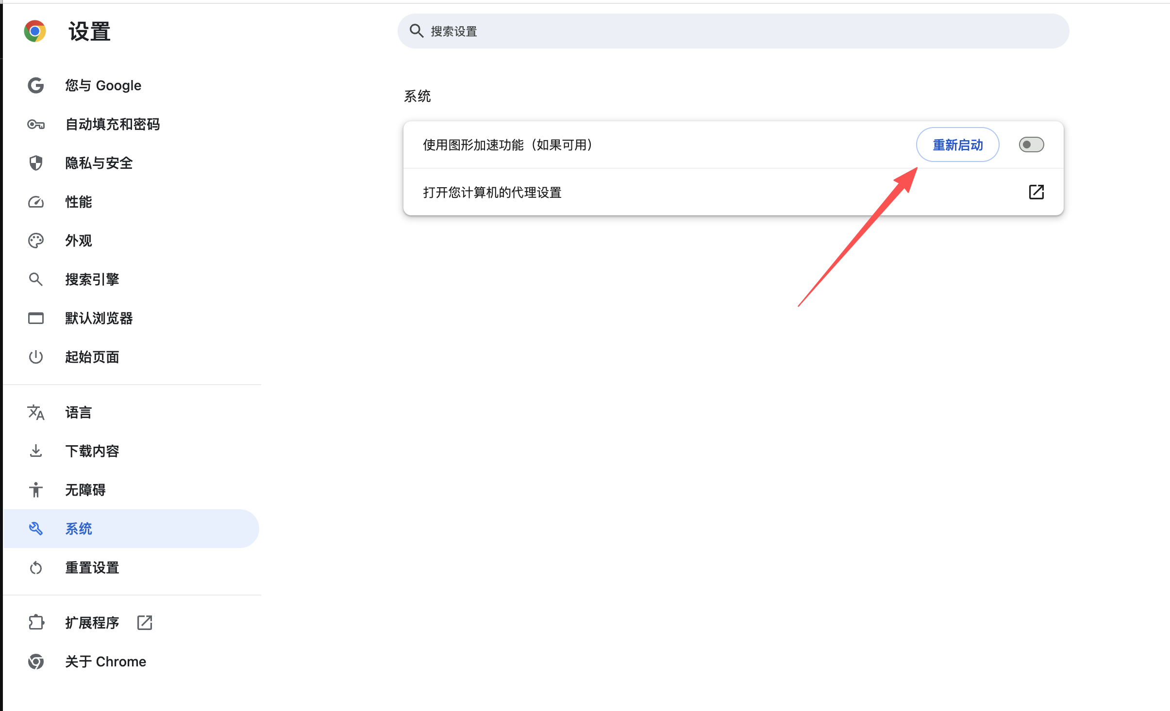/Applications/Google\ Chrome.app/Contents/MacOS/Google\ Chrome --disable-gpu在设置里禁用 GPU 加速。